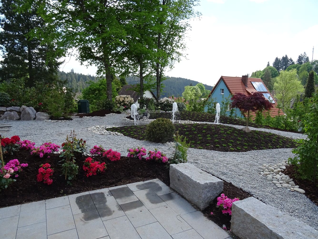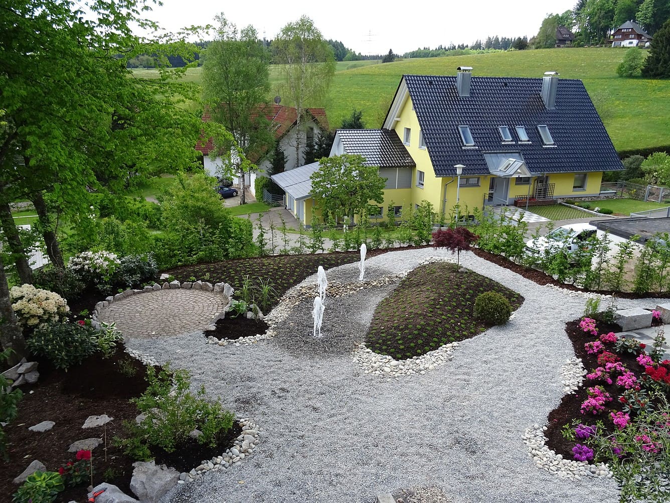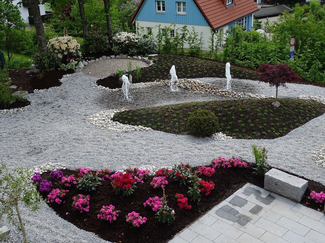 Bei einer Neuanlage geht es oft um alle Bereiche der Gartengestaltung: angefangen von Erdbewegungen und dem Abtrag von Aushub über die Anlage von Wegen und Treppenaufgängen, Hofgestaltungen und Einfassungen bis hin zu Pflanzungen und dekorativen Elementen. Wir beraten Sie schon in der Bauphase Ihres neuen Zuhauses und erstellen erste Planungsvorschläge anhand Ihrer Baupläne.