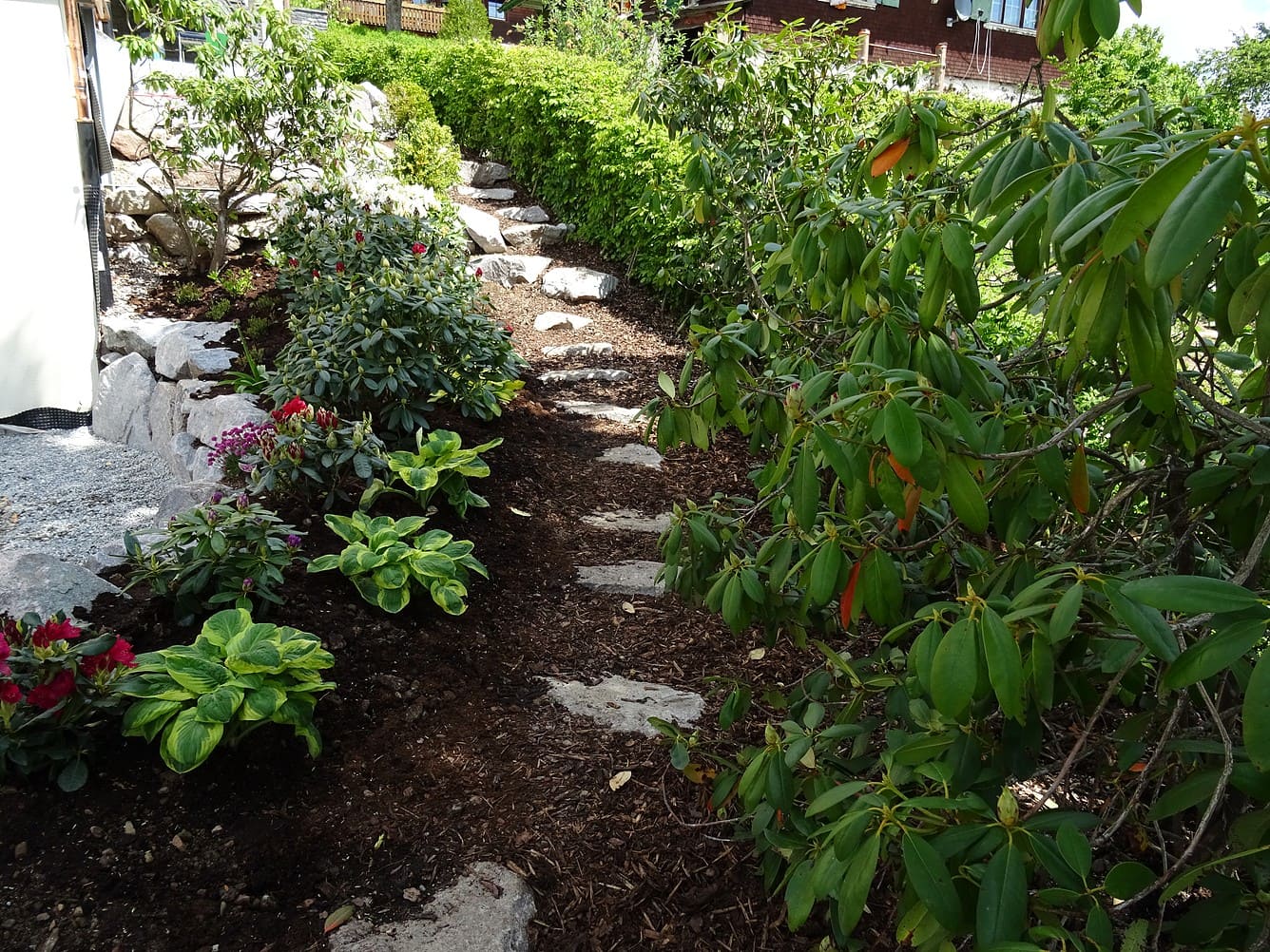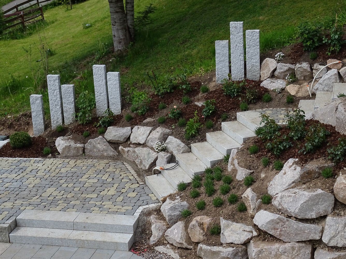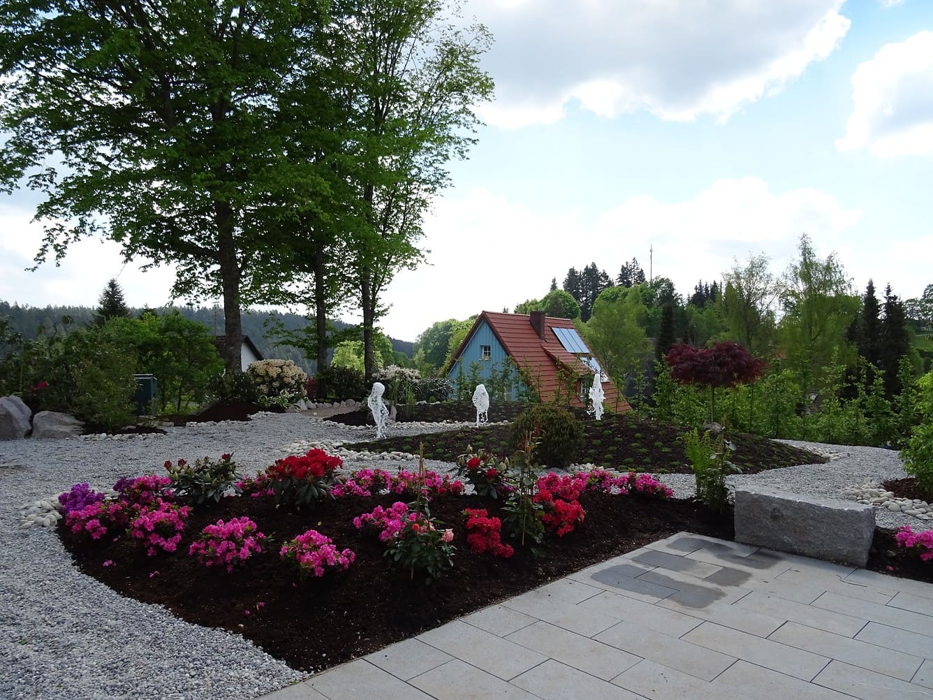 Bei einer Neuanlage geht es oft um alle Bereiche der Gartengestaltung: angefangen von Erdbewegungen und dem Abtrag von Aushub über die Anlage von Wegen und Treppenaufgängen, Hofgestaltungen und Einfassungen bis hin zu Pflanzungen und dekorativen Elementen. Wir beraten Sie schon in der Bauphase Ihres neuen Zuhauses und erstellen erste Planungsvorschläge anhand Ihrer Baupläne.